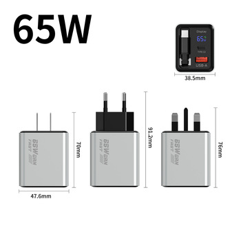 高品質証明書GaN 65W LEDディスプレイ旅行用高速充電器USB C PD QC3.0 iPhone 17用格納式ケーブル付き